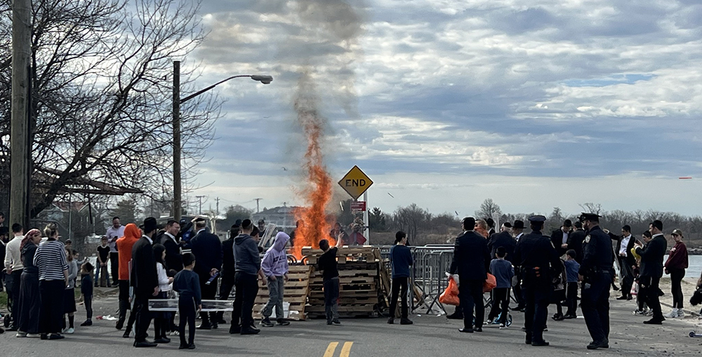 Before Passover began on the evening of Wednesday, April 1, members of the Jewish community gathered for a community-wide chometz burning in Far Rockaway and parts of Nassau County.