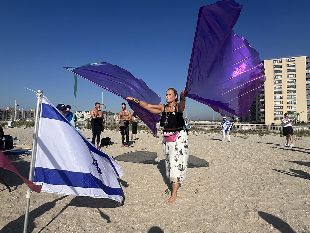 Sunday’s beach commemoration began with a dance, choreographed by Theresa M. Racine, who used streamers and praise flags to send a message of peace, deliverance, faith and love. She danced to “Adonai,” a prayer sung in Hebrew and Arabic. Racine encouraged everyone to grab a streamer and join in as she spoke words of intention over each participant.