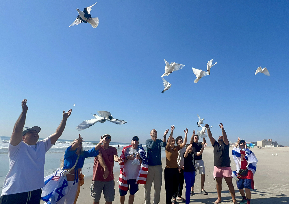 As the surfers threw flowers up in the air, so did other attendees from the beach. They were then handed about 20 white birds to release into the sky, with the hope that the remaining hostages will also be released, and there can be peace for Israel and the world.