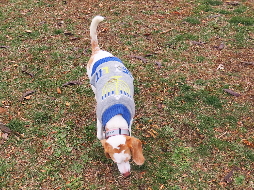 The dogs also came in a festive array of outfits for the occasion. There were red and green sweaters, fashionable snowflakes, flannel checks and other designs, barking Santas in red fur trimmed caps and coats, dogs wearing jingle bells, others dressed as presents, elves, at least one Grinch, and a Hannukah-celebrating blue and gray clad pup with a menorah emblazoned sweater.
