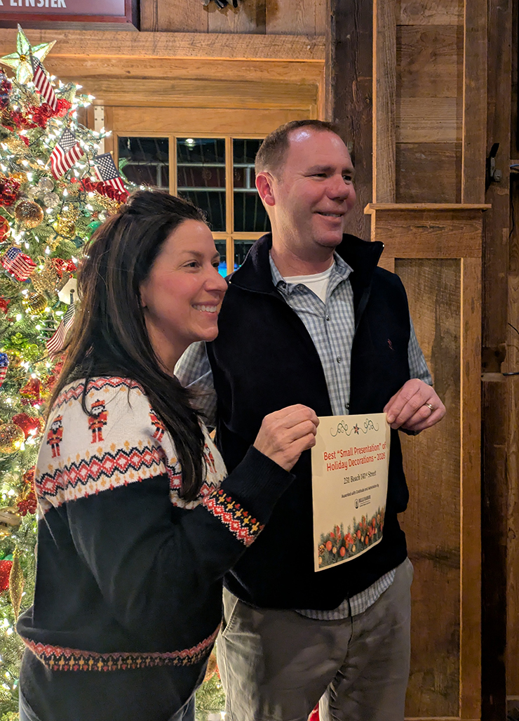 It was a very happy holiday celebration at the Harbor Light on Monday, December 22 as Belle Harbor Property Owners Association (BHPOA) presented awards and certificates in its first annual Christmas and Hanukkah home decorating contest. Twenty families were recognized for beautifying their homes this season.