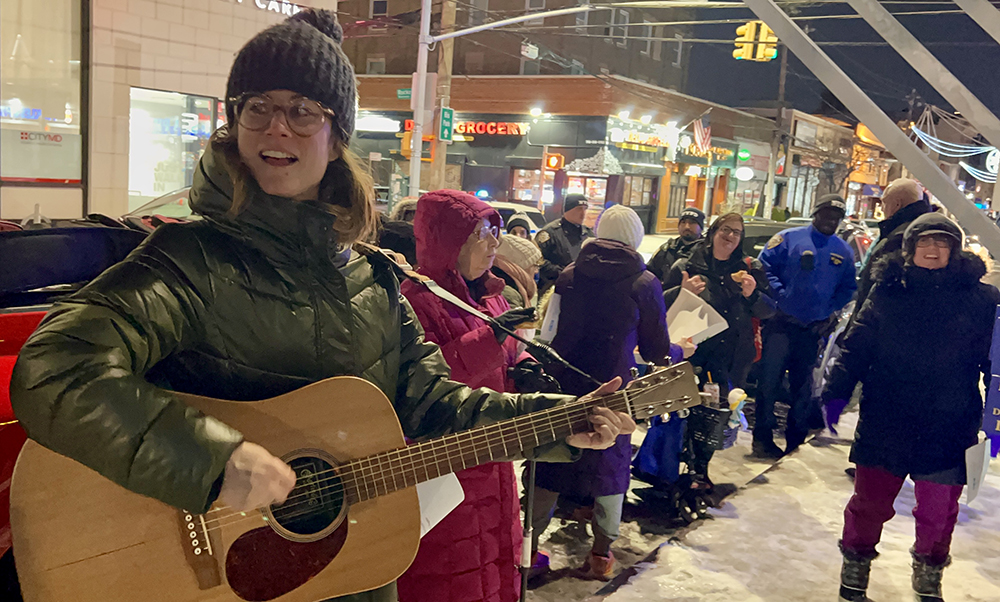 “We are so happy to see everyone here on this cold, chilly, icy evening but we’re gonna bring the light of Hanukkah into this darkness and spread the light into the world,” Rabbi Epstein said. “We’re so excited to be together and feel the strength in being together through our community.”