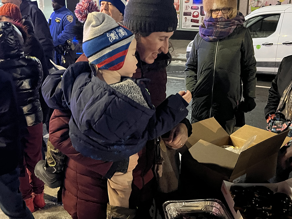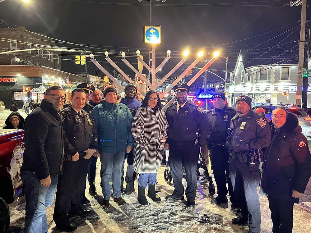 On Tuesday, December 17, Councilwoman Joann Ariola, the Rockaway Civic Association, Rabbi Rebecca Epstein of West End Temple and Rabbi Matt Carl of Temple Beth-El brought the community together to celebrate Hanukkah. Despite chilly and icy conditions after Sunday’s snow, and the horrific events across the world, hearts were warmed by the turnout from Jewish people and those of other faiths from across the peninsula at the peaceful event on Beach 116th, kept safe with the help of the NYPD. All in attendance were welcome to enjoy a variety of donuts, chocolate gelt from Madeleine Chocolate and dreidels. And Rabbi Epstein herself brought a guitar to play and sing “Chanukah, Oh, Chanukah” and a creative, extended version of The Dreidel Song.