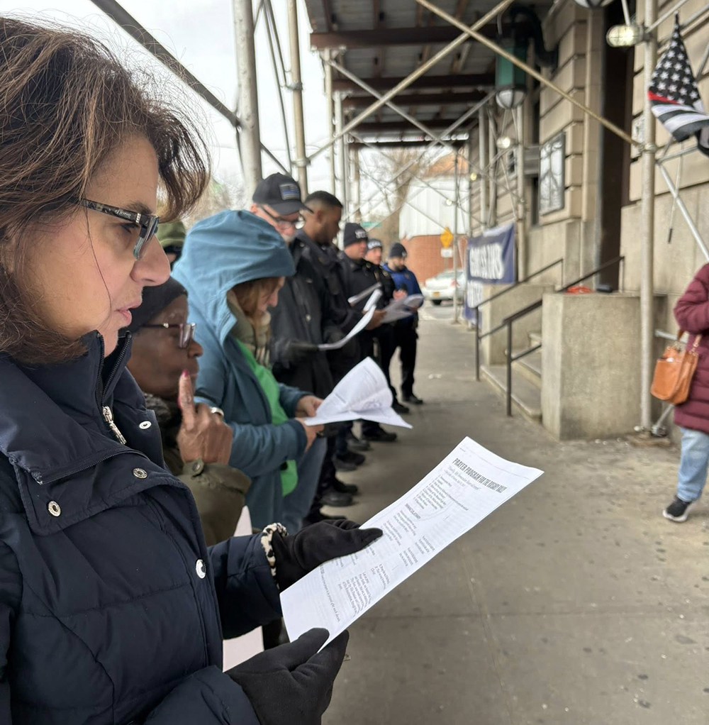 Last month, Mary Ruane of the Rosary group at St. Helen Church in Howard Beach, wanted to help boost the spirits of and offer support for the city’s police officers by praying the Rosary over nearby precincts. She reached out to Phyllis Inserillo, president of the Howard Beach Civic and chief of staff to Councilwoman Joann Ariola, for assistance and the effort has now become a citywide mission. So far, the NYPD Prayer Warriors have prayed the Rosary over the 106th, 102nd Precincts and the 100th Precinct in Queens, and on Saturday, they visited the 101st Precinct on Mott Avenue, where several officers themselves joined the prayer group.