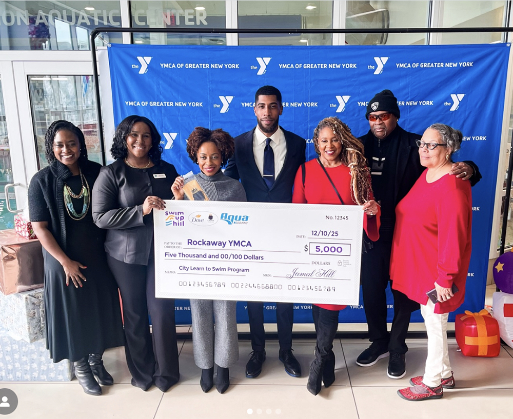 According to Aerial Mathis, executive director of the Rockaway Y—on a hyper local level—Hill’s donation helps propel the YMCA’s nationwide initiative to hone in on providing swim classes and lifesaving water safety skills to second grade students at 1,600 YMCAs across the country. “With Jamal’s donation, we’re able to pick not just one, but two second-grade classes at local elementary school, P.S. 197, in addition to the funding we received from Councilwoman Selvena Brooks-Powers for second graders at P.S. 183,” she said. Hill’s donation will help pay for supplies and staffing needed for the swim program offered free of charge to the students. Hill also donated a $5,000 check earlier in the week to the NYC Parks Department to further the agency’s swim safety efforts. As for how Hill, hailing from Inglewood, an inner city in Los Angeles, Calif, discovered Rockaway, is through the power of social media multiplied by local dad, president of civic, the Heart of Rockaway (THOR), Edwin Williams’ determination to help his two sons excel at competitive swimming.