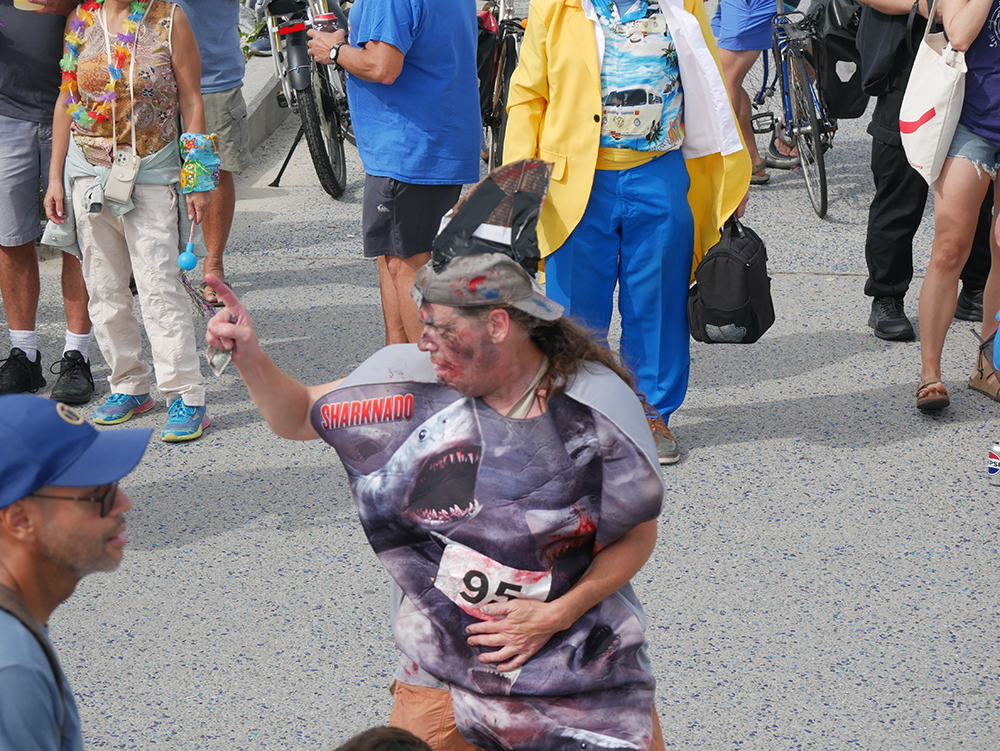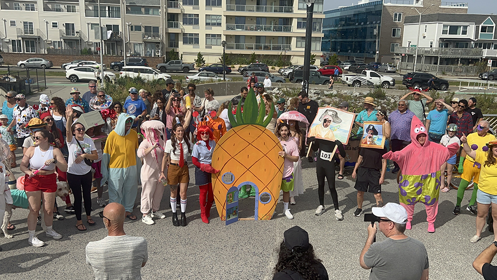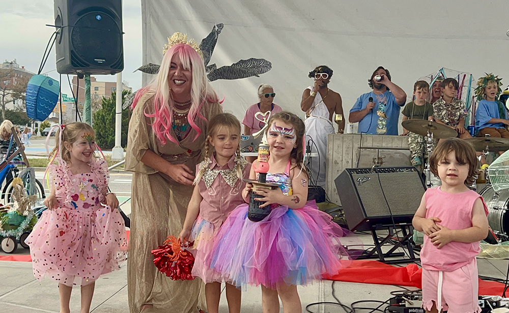 The winners were as follows: Channeling their inner Jimmy Buffett, Dogaritaville took Best Pet. Connolly’s Rum Runners, serving up their famous piña coladas, earned Best Pub/Restaurant. Best Push/Pull Cart went to the colorful Portable Coral Reef carrying a mermaid pup and pushed by a seagull. The Knights of Columbus’ Deadliest Catch, which featured everything from a boat float to cage-covered fishermen and women and an inflatable lobster, was presented with Best Adult Group (the Kristine Caruso Award), by the fiancé of the late and dearly Kristine Caruso, Kevin O’Connor. The gods and goddesses of Beach 101 impressed throughout but their dolphin-led chariot earned them Best Bike. The Best Children’s Group was a no brainer as the many little Pink Pony Club mermaids had everyone saying “aww!” Eric Dahl tore through the boardwalk with his reenactment of Sharknado, making him Best Individual (the Miss Colombia Award), which was a tough category with so many deserving contenders. Another no brainer was the always impressive Beach 92nd Street crew earning Best Block for their detailed rendition of SpongeBob SquarePants, complete with the whole Bikini Bottom gang and a SpongeBob float that could be in the Macy’s Thanksgiving Parade. But with that, Best Float had to go to another, which was a lifeguard favorite, Rotted: the Horn from 1925, riding in a car from probably the same time period. Best Performance went to the Hot Mess Express who time-warped their way to the top with their Rockaway Horror Picture Show. And topping their performance was return favorite, the Tailshakers, pulling out all the stops with dozens of beautiful mermaids shaking out perfectly choreographed dance moves, earning them Best Overall this year.