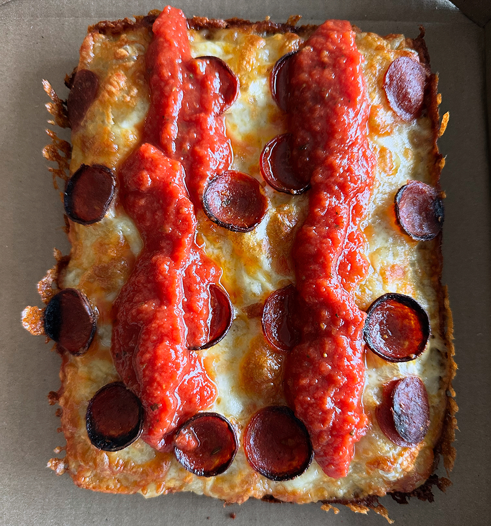So, what is it? “It’s a square, or really a rectangle and it’s Sicilian style meaning the dough is pushed down into a pan and you let it rise. You put cheese on top of the dough and then add the sauce on top of the cheese. Us being in Rockaway, the closest thing to it is L&B, but it’s not quite that style. The difference is the cheese,” Aiken said. “The cheese gets all burnt and crispy. They call it frico around the edge of the crust, and it gives it this delicious, cheesy, crunchy bite. It’s so addictive. The cheese blend I’ll be using is a special low moisture mozz and white cheddar. I’m excited for people to try it.”