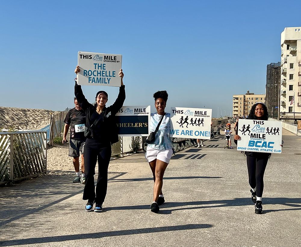 On Sunday, October 5, the boardwalk at Beach 116th was a sea of blue t-shirts as runners and walkers of all ages came out to participate. The participants first met at Rogers for their shirt and number pick up before hitting the boards on the summer-like morning. The 7th Annual Catch a Cure 5K was held on behalf of Rockaway, Breezy Point and Broad Channel residents dealing with cancer and in honor of those who have been successful with their battles. This year’s Catch a Cure was in memory of Richie O’Connor of Rockaway, Patricia Redmond of Breezy Point, and Billy Gill of Broad Channel, and it was run in honor of Marianne “Skippy” Doyle of Rockaway, Liz Boyle of Broad Channel and June Morgan of Breezy Point.