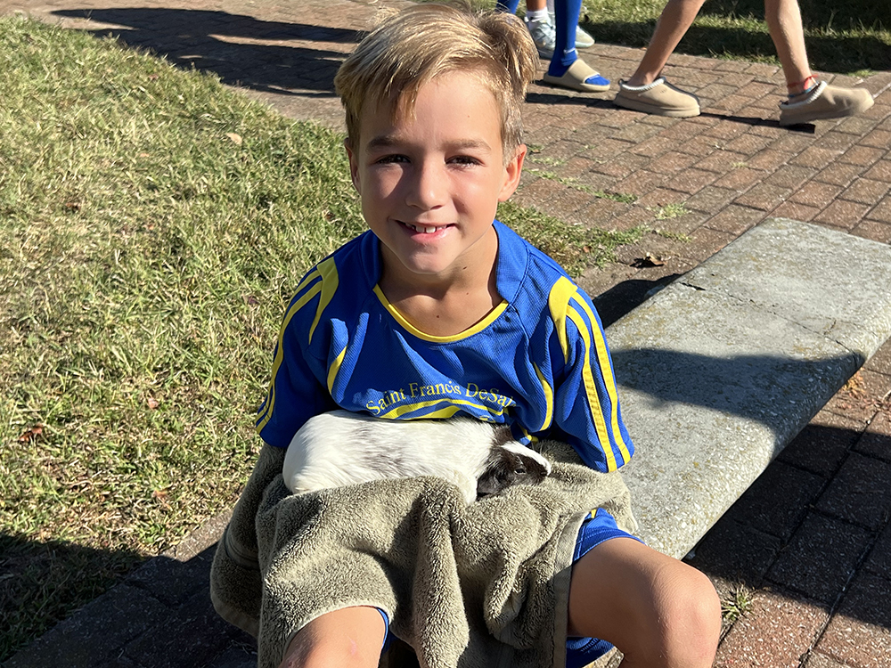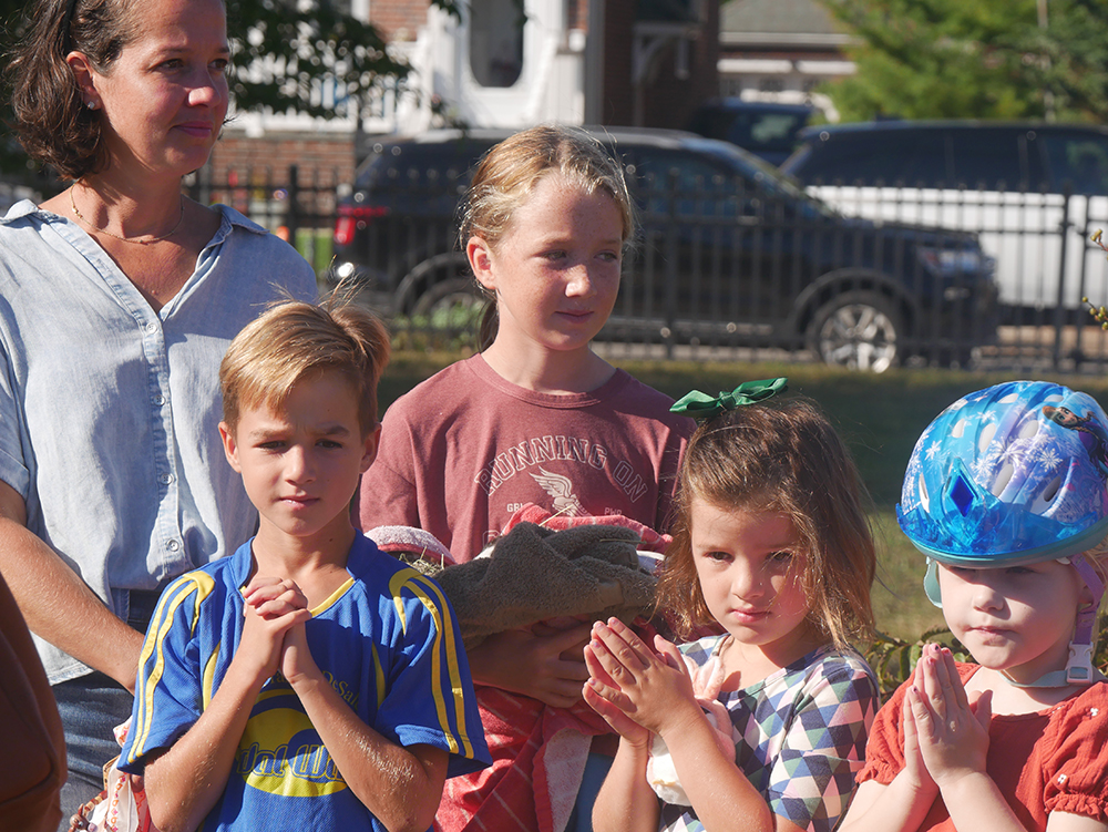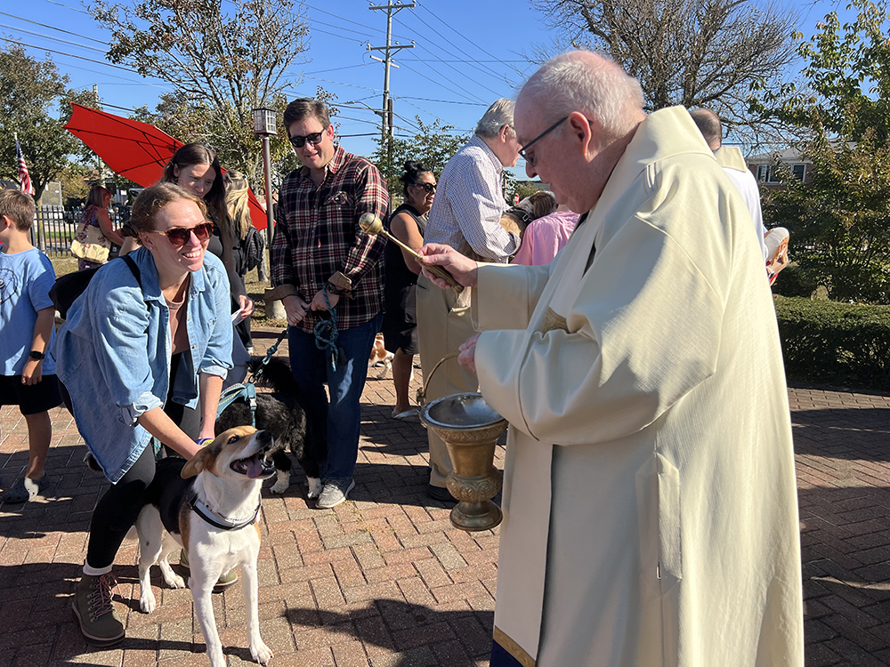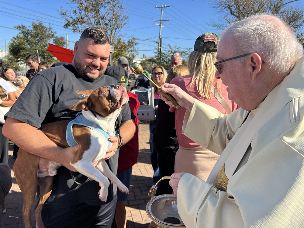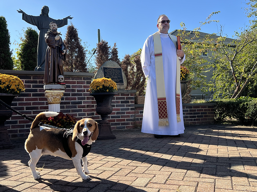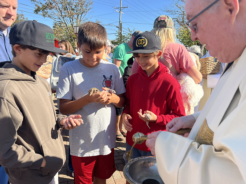 Having to lead a funeral Mass right after, Father Jim Cunningham and Father Bill Sweeney of SFDS met with parishioners and their pets at the Prayer Garden on Beach 129th and Rockaway Beach Blvd. for a quick ceremony to mark the Feast of St. Francis of Assisi. They led prayers, handed out St. Francis of Assisi medallions to everyone and Father Bill doused pets in holy water as he blessed them. A statue of St. Francis of Assisi was even brought to the prayer garden for the occasion.