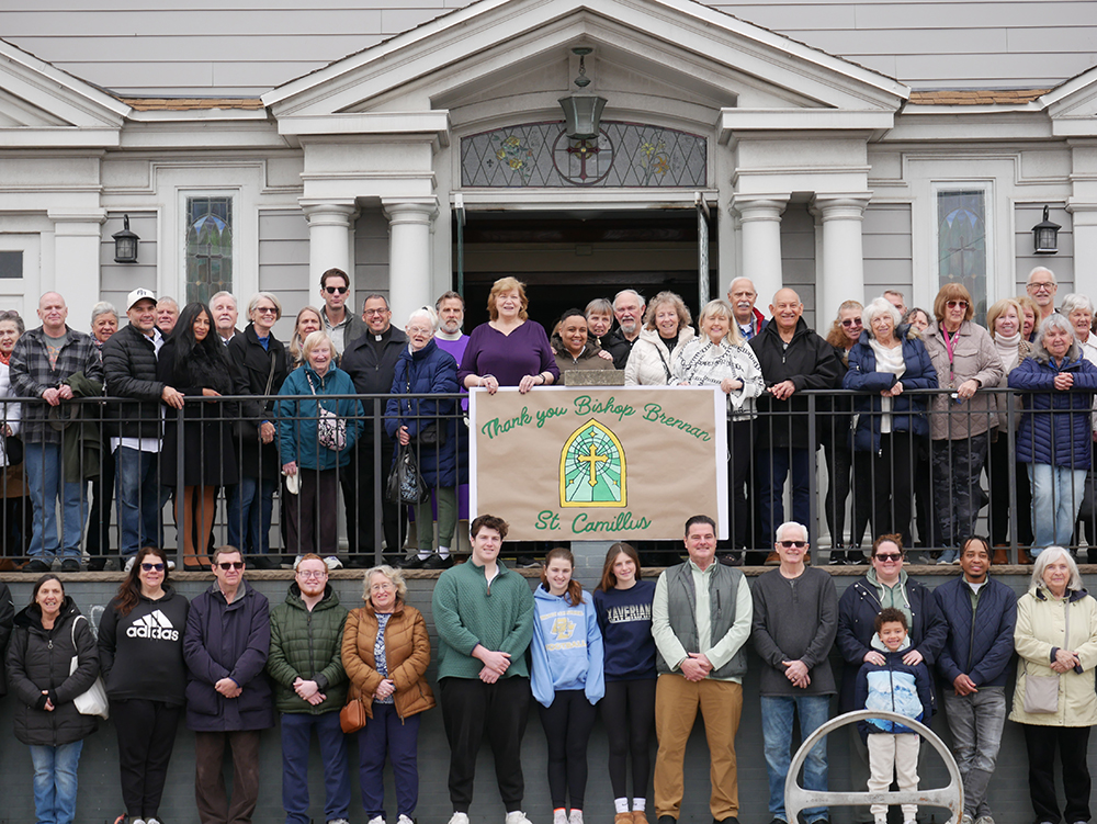A special banner was created for the Mass on Sunday, March 22, to thank Bishop Robert Brennan for deciding not to close St. Camillus Church, an announcement made at the previous Sunday Mass.
